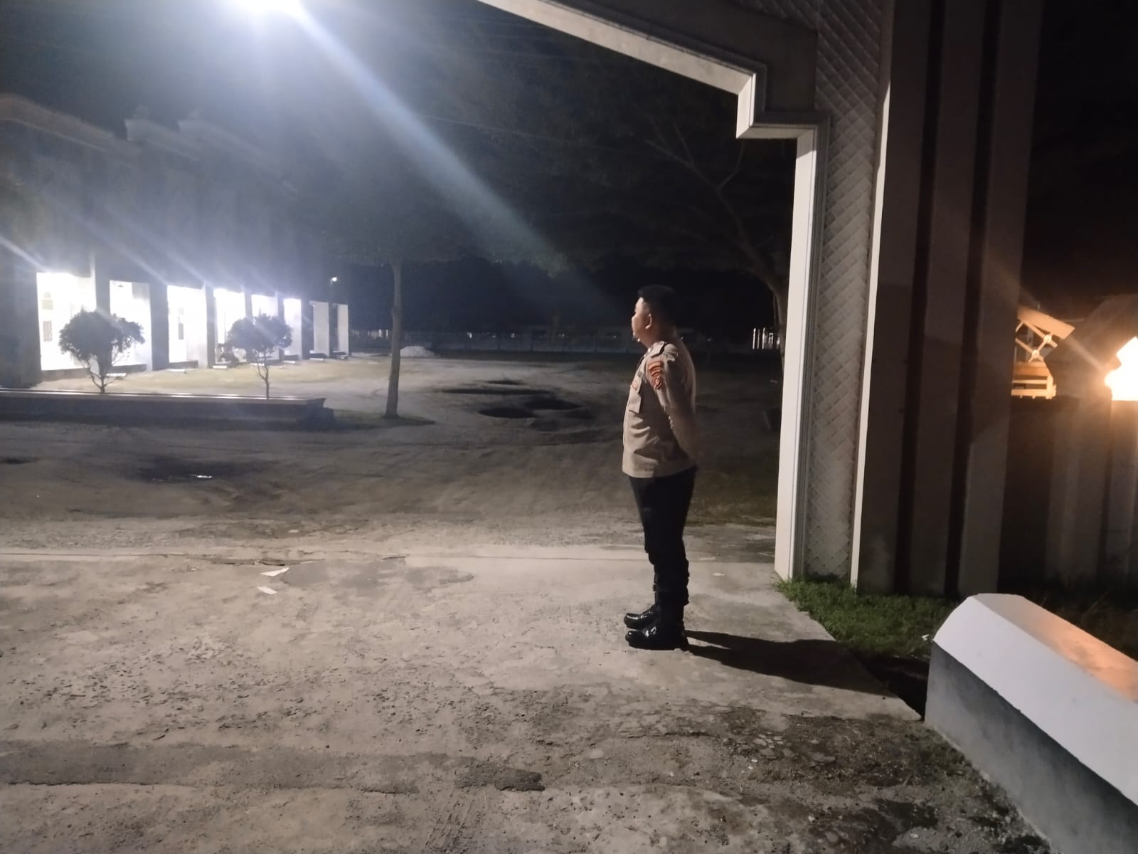 Personel hadir langsung di area masjid untuk melakukan penjagaan serta pemantauan di sekitar lingkungan tempat ibadah, termasuk area parkir kendaraan jamaah guna mengantisipasi potensi gangguan keamanan.