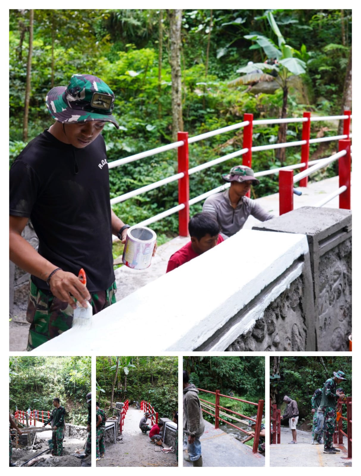 Pengecatan dilakukan secara gotong royong oleh Satgas TMMD bersama warga sekitar. Kegiatan ini bertujuan memperindah tampilan jembatan sekaligus melindungi material dari pengaruh cuaca agar usia pakai jembatan lebih panjang dan aman digunakan.