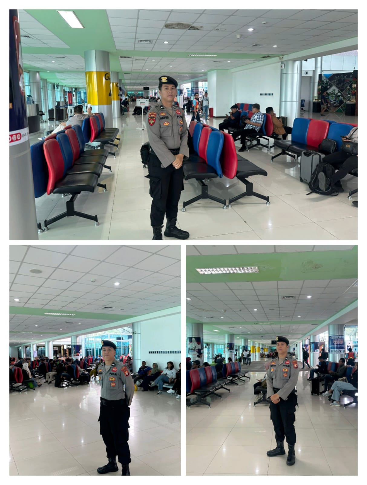 Patroli dilakukan dengan menyusuri area terminal kedatangan, keberangkatan, hingga pintu akses utama, guna memastikan situasi tetap aman, tertib, dan kondusif bagi para penumpang maupun pengunjung bandara.