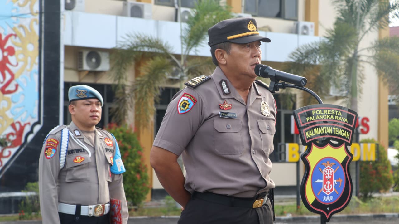 Apel pagi berlangsung di Mapolresta Palangka Raya, Jalan Tjilik Riwut Km. 3,5, Kota Palangka Raya, Kalimantan Tengah, yang dihadiri oleh para Pejabat Utama (PJU), Perwira beserta personel Bintara dan PNS Polri kesatuannya.