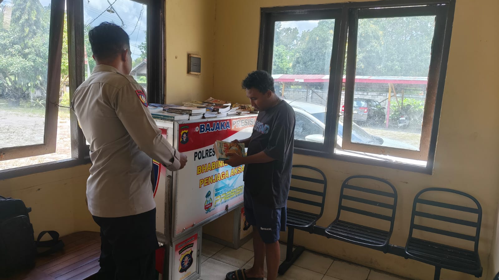 Perpustakaan Bajaka Presisi beroperasi di Mapolsek Sabangau, Jalan Mahir Mahar Km. 16, Kelurahan Kalampangan, Kecamatan Sabangau, Kota Palangka Raya, Kalimantan Tengah, sebagaimana yang disampaikan oleh Kapolsek, Iptu Ahmad Taufiq, Rabu (1/4/2026) pagi.