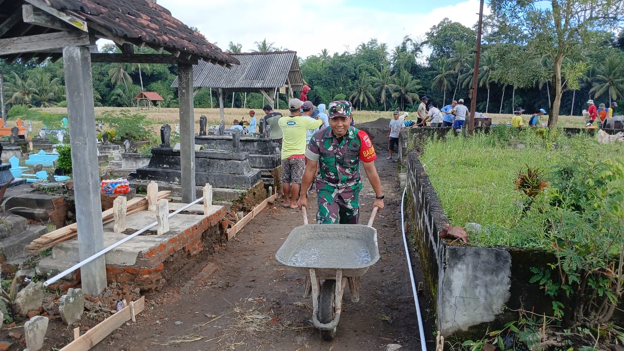 Tingkatkan Kenyamanan Warga, Babinsa Posramil Selopuro Bantu Cor Jalan Pemakaman